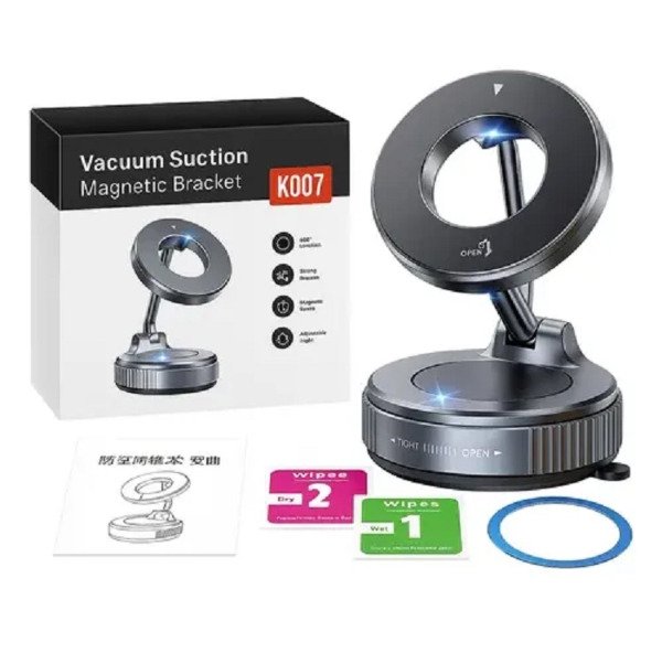 Incluye elemento de metal con autoadhesivo de fácil colocación para el celular, film transparente y paños de limpieza