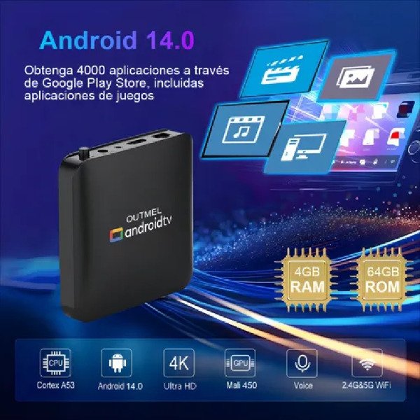 El sistema operativo Android 14.0 ofrece una experiencia de usuario intuitiva y fácil de usar. El potente procesador Amlogic S905L3 de cuatro núcleos y 64 bits Cortex-A53 (a 2.0 GHz) y el procesador ARM Mali-450 de cinco núcleos garantizan una velocidad y un rendimiento excelentes.