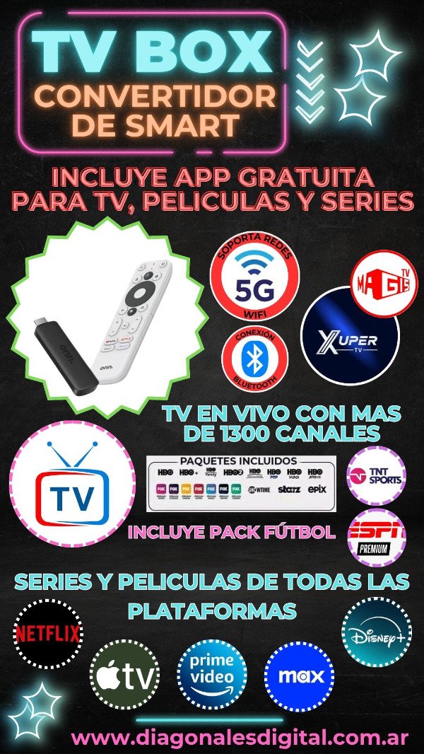Disfruta de tus canales digitales favoritos con nuestro Dispositivo de Streaming Onn Google TV Full HD. Con una resolución Full HD, te sentirás inmerso en la acción. Accede a películas y programas de tus plataformas favoritas como Netflix, Google TV, Disney+, todo en un solo lugar. Puedes pedirle a Google que controle tu televisor con tu voz y transmitir fácilmente tus fotos, vídeos y música con Chromecast integrado.