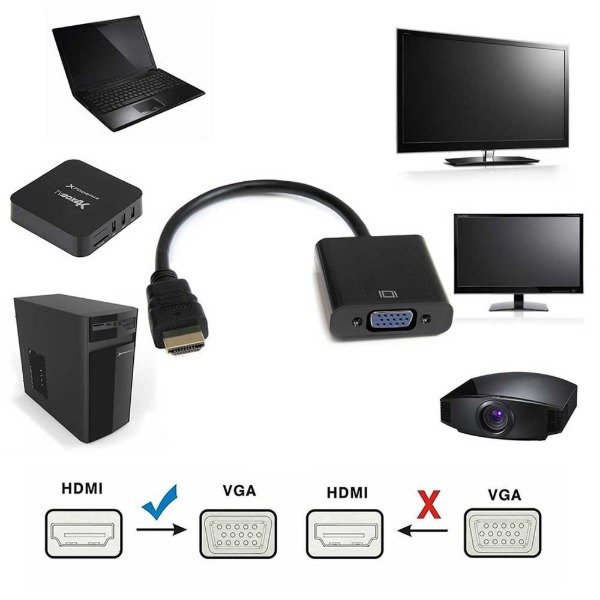 * NO ES BIDIRECCIONAL: El producto SÓLO sirve para conectar dispositivos con salida HDMI (por ejemplo, PC / Notebook) a un monitor o proyector con entrada VGA.