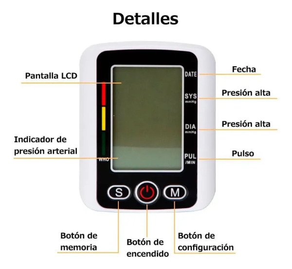 Muestra sistólica, diastólica y pulso, te da la oportunidad de obtener medidas confiables y precisas en cualquier momento y lugar, pues está equipado con una innovadora pantalla de fácil visualización para evitar errores.